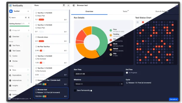 When you're ready to start testing, use your TestQuality's integrated Unified Test Management Platform to execute, manage, and report on your automated testing, unit testing, manual testing cycles.