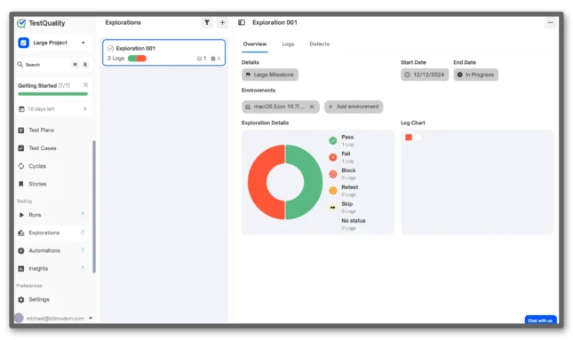 Explorations empower testers to conduct ad-hoc and exploratory testing without the constraints of predefined test cases or scripts. This allows testers to investigate application areas that require deeper analysis or are outside the structured Test Cycle, offering a dynamic and adaptive testing option.