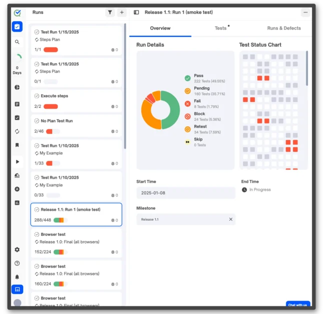 Quick overview dashboards give you and your teams "at a glance" statuses on key metrics and progress of your testing projects.