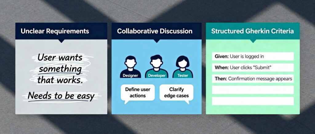 Cross-functional collaboration has become standard practice, with teams needing shared understanding across diverse roles. Gherkin acceptance criteria provide a common language that product managers, developers, and testers can all understand and contribute to effectively.