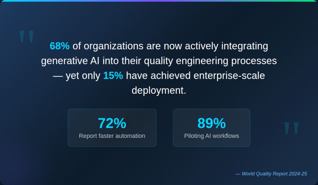 AI test management software has evolved from experimental technology to essential QA infrastructure, with 68% of organizations actively integrating generative AI into their quality engineering processes.