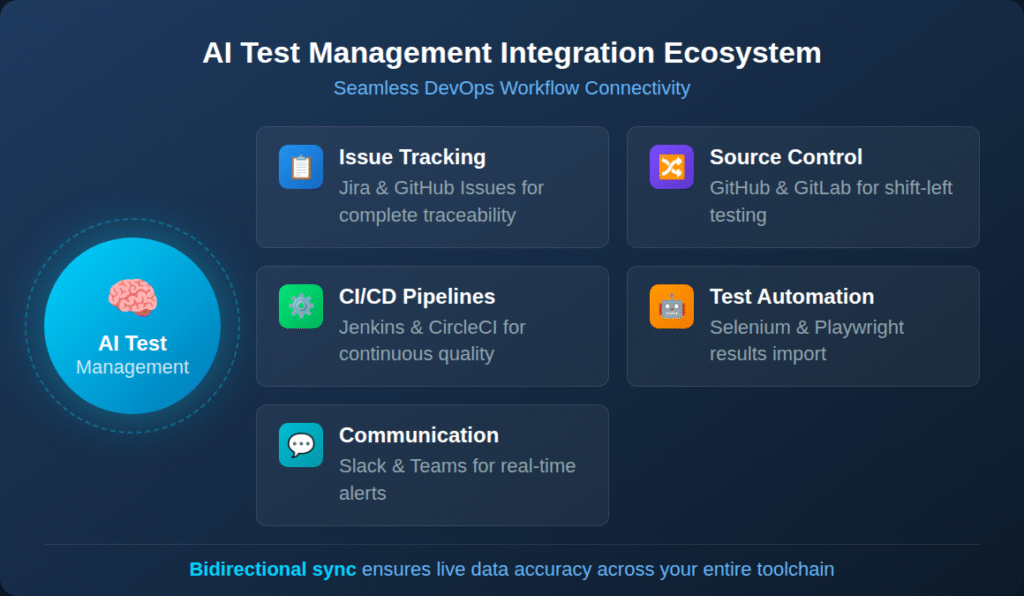 Integration depth separates effective QA management tools from disconnected point solutions. The most valuable platforms embed seamlessly into existing development ecosystems rather than requiring workflow changes to accommodate testing.